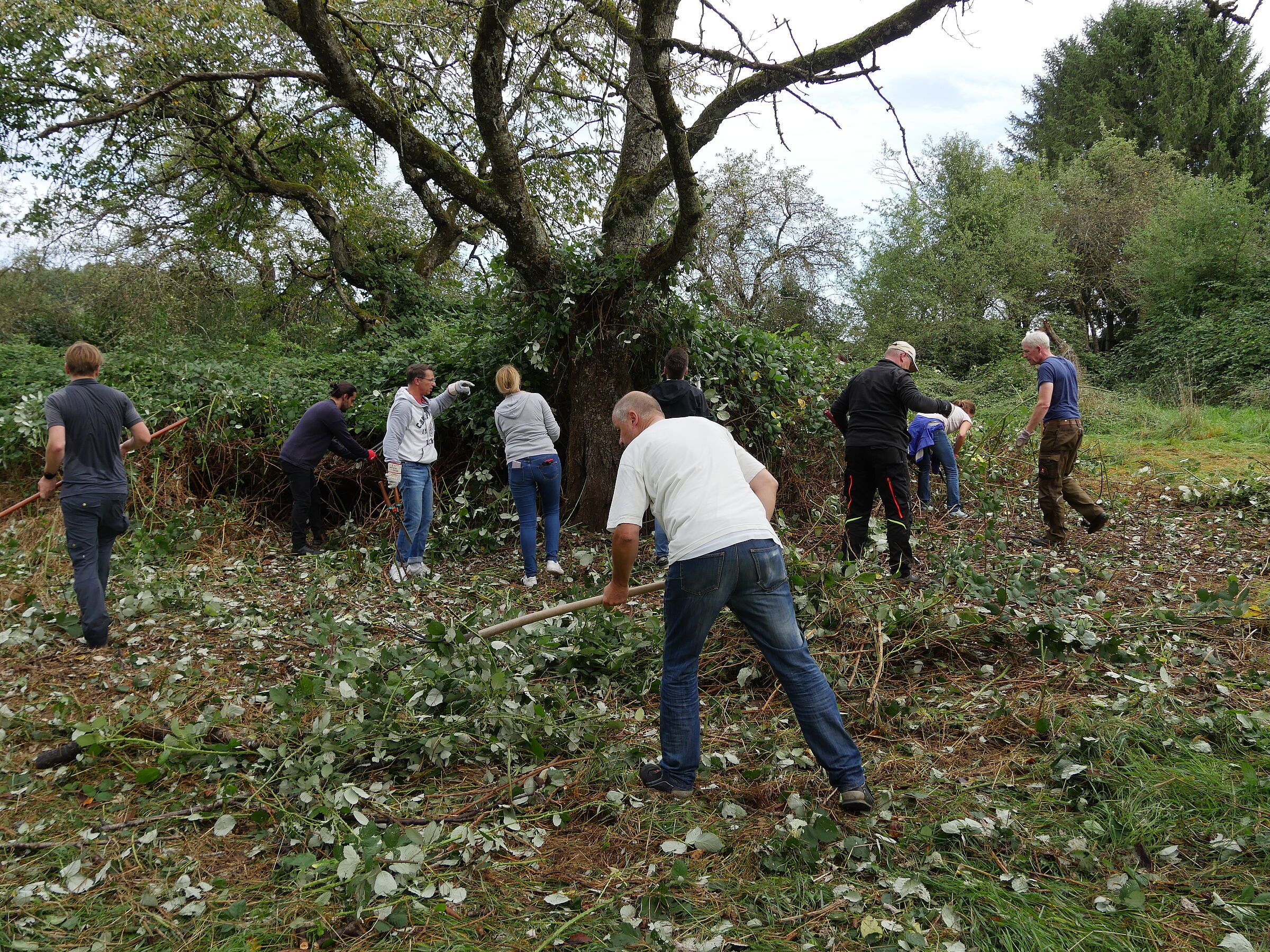 Größtes Problem: Die Brombeeren! Daher kam die Antwort auf die Anfrage von Beate Schebelle, ob uns etwas einfällt für eine Art "Social Day" in Form eines Arbeitseinsatzes für den BUND Naturschutz schnell: Klar, fällt uns etwas ein, wir haben ein Brombeeren-Problem!