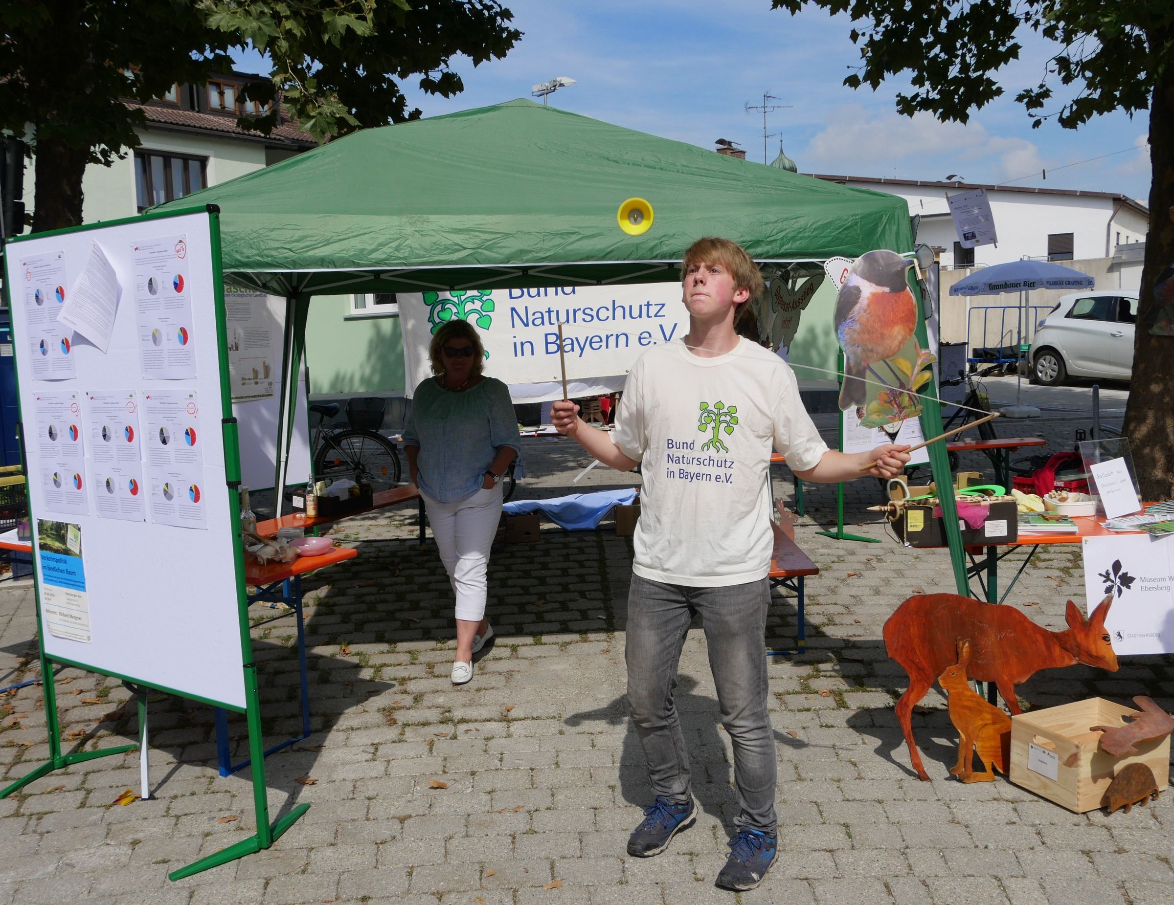 Die Ortsgruppe Grafing des BUND Naturschutz war mit einem gut besuchten Infostand vertreten. Landrat Robert Niedergesäß und die stellvertretende Landrätin Waltraud Gruber fanden Gefallen an den Geschicklichkeitsspielen, die Klaus Grünebach, BN-Vorsitzender der Ortsgruppe Grafing, dabei hatte.